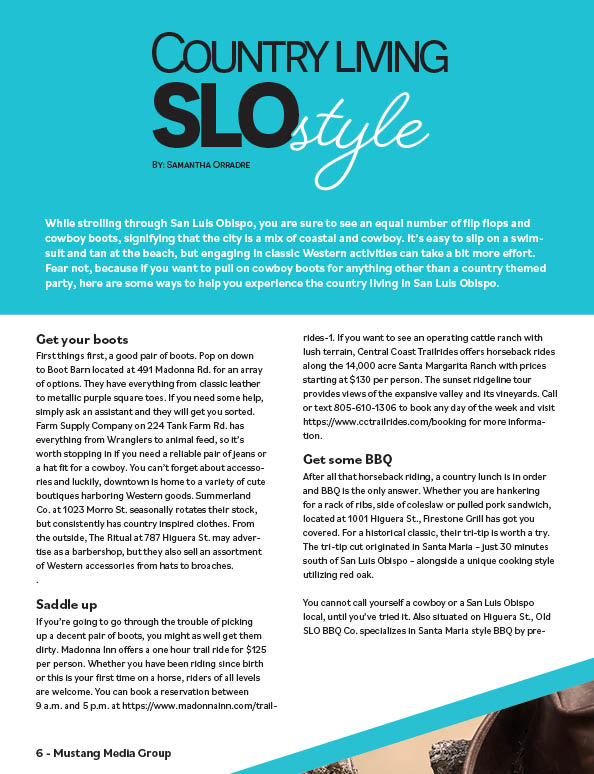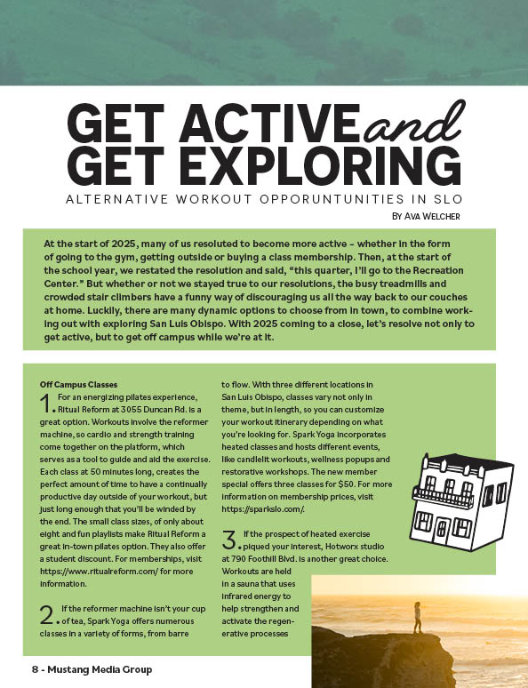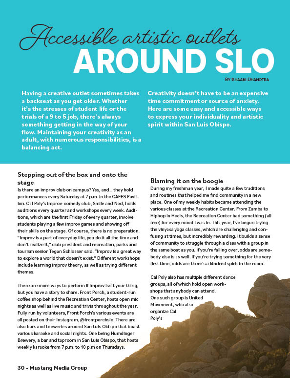 This article was intended more for students coming from more rural parts of California, which SLO has lots of. For kids like these, we are hopefully able to give them a good idea of what SLO really is like. Once again, super proud of this layout and especially the title.